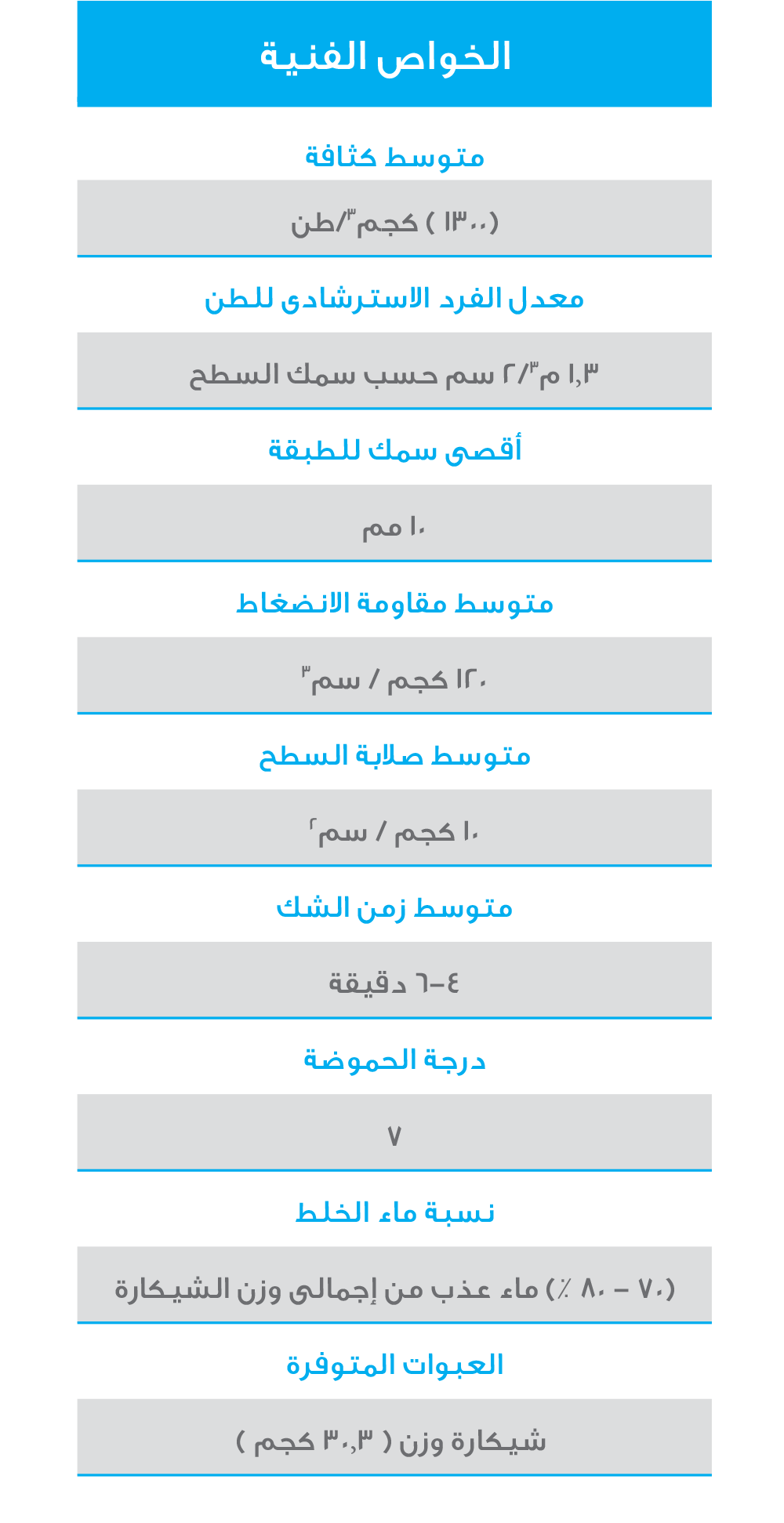– يمكن ضبط معيار الماء للوصول للقوام المناسب لطبيعة السطح واحتياج العامل .